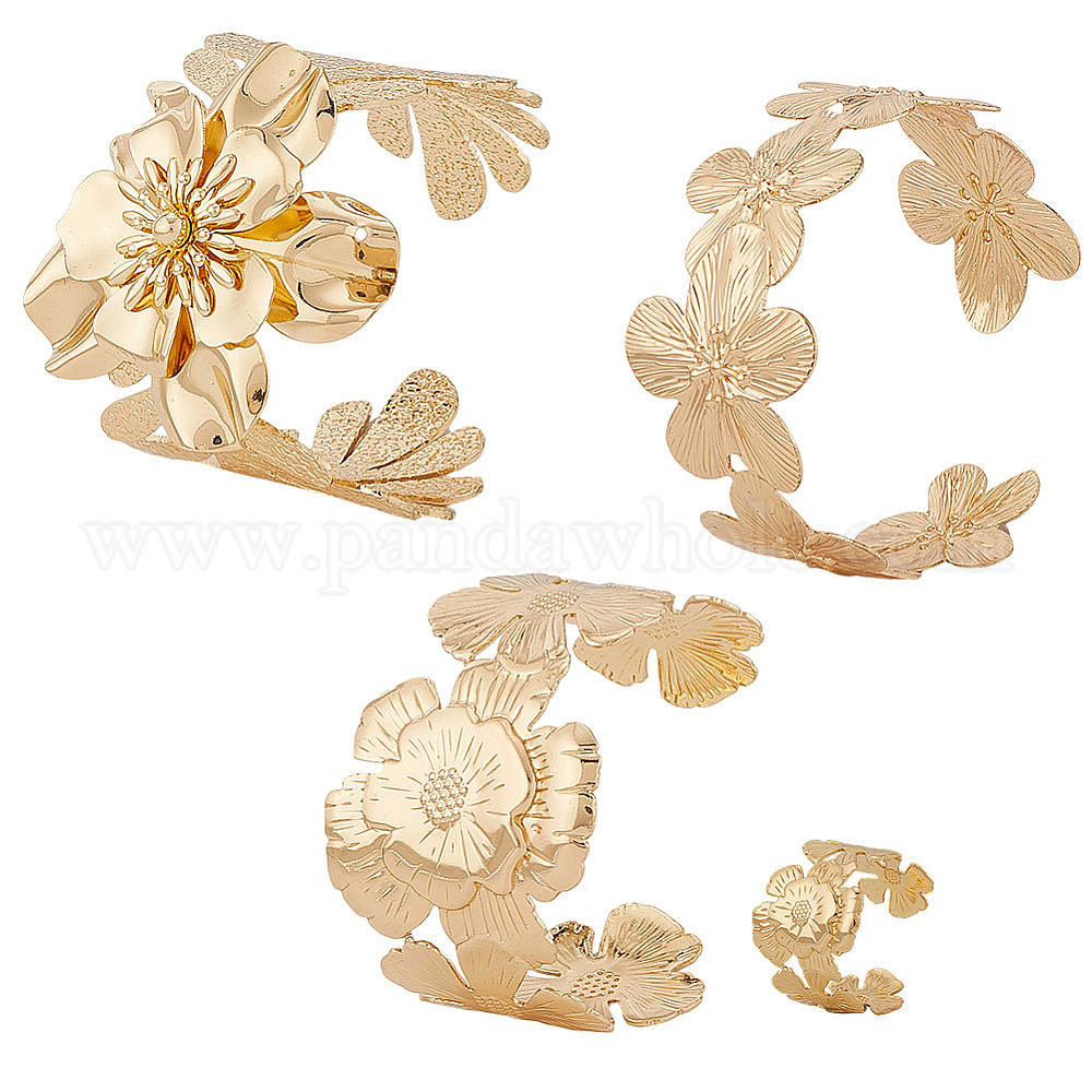 Браслеты-манжеты и комплекты колец из сплава с цветком: о браслетах: 51.5 внутренний диаметр мм, шириной 41.5 мм , 1ПК; кольцо: регулируемый внутренний диаметр, шириной 16 мм , 1шт.