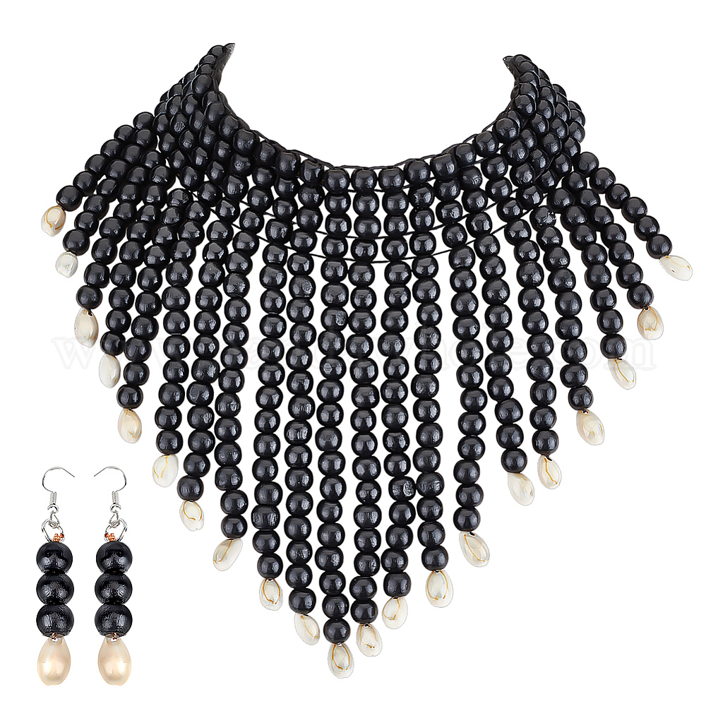 Комплекты этнических ожерелий и серег из деревянных бусин