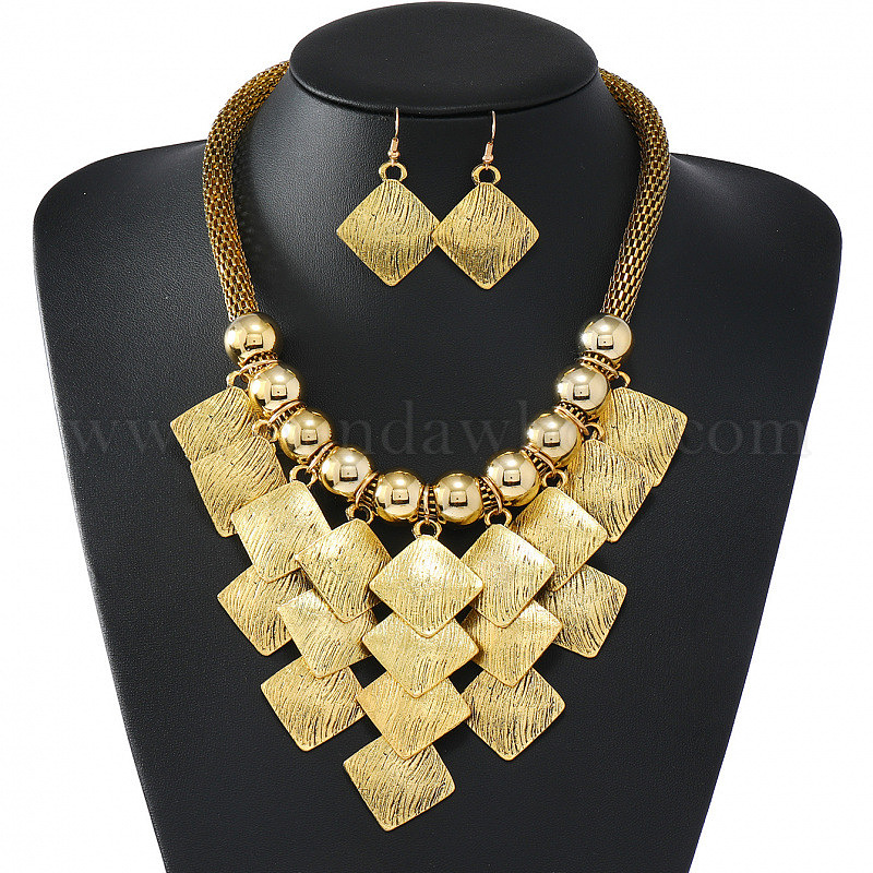 Комплект из ожерелья с подвеской в виде ромба и серег-подвесок из сплава