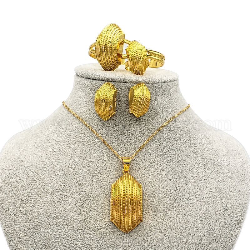 • Золотой Ожерелья с подвесками из шестиугольного сплава, серьги-кольца, браслеты-манжеты и кольца для женщин, золотые, 450 мм