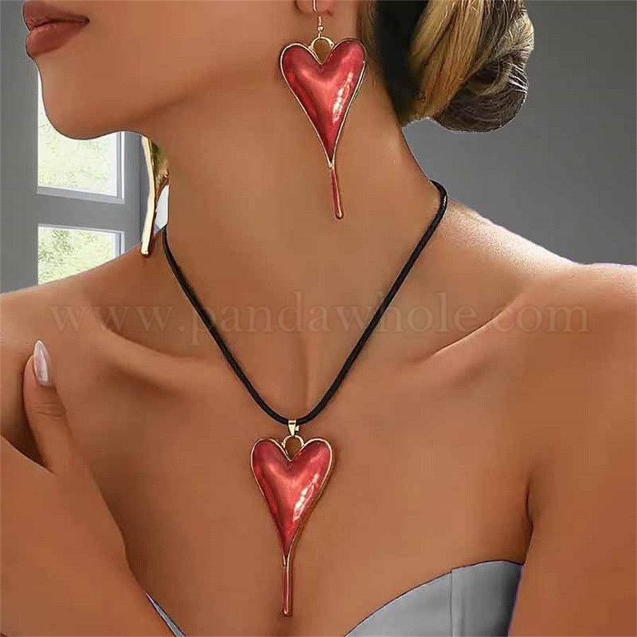 Комплекты из эмалевых серег и ожерелий с подвесками в форме сердца для женщин, ожерелья из восковых веревок