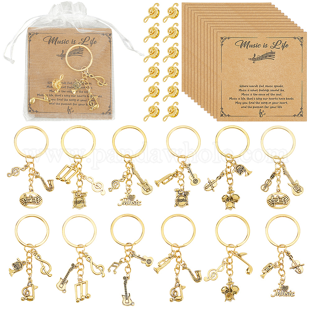 • Золотой Брелки и броши из сплава, с подвесками из сплава и подарочными пакетами из бумажных карточек и органзы, разнообразные, золотые, 9.1~88 мм
