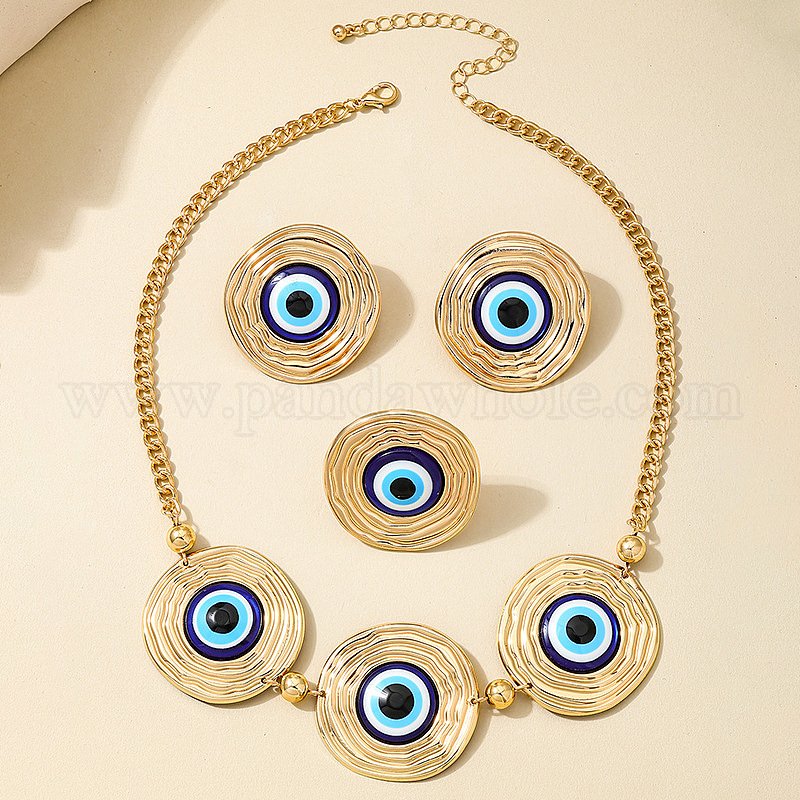 Комплекты из эмалевых серег, ожерелий и колец для женщин, плоские круглые с сглаза