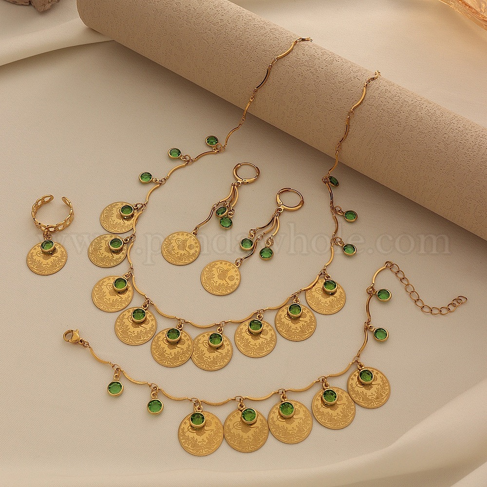 Ожерелья с подвесками из сплава и кубического циркония, серьги-кольца, браслеты с подвесками и комплекты колец, плоско-круглые