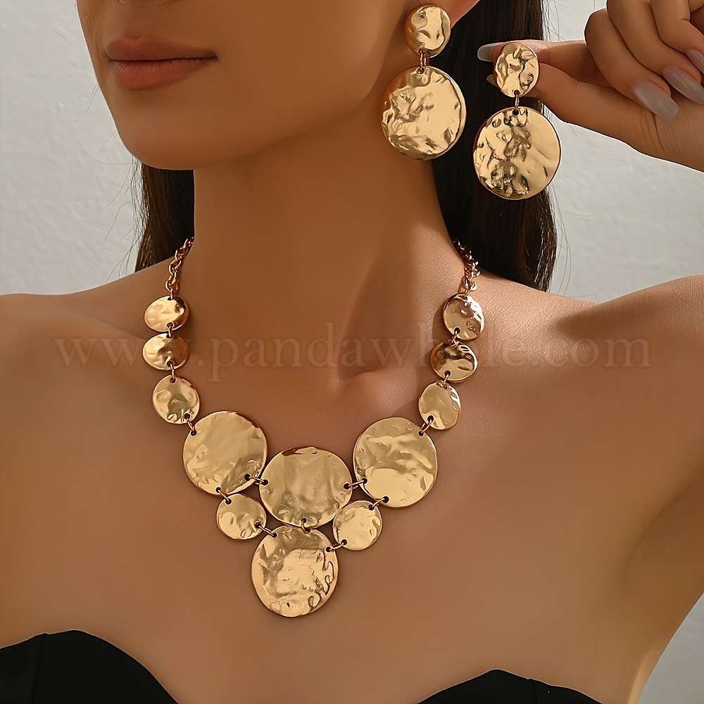 Комплекты из ожерелий с подвесками из сплава и серег-гвоздиков для женщин, плоско-круглые