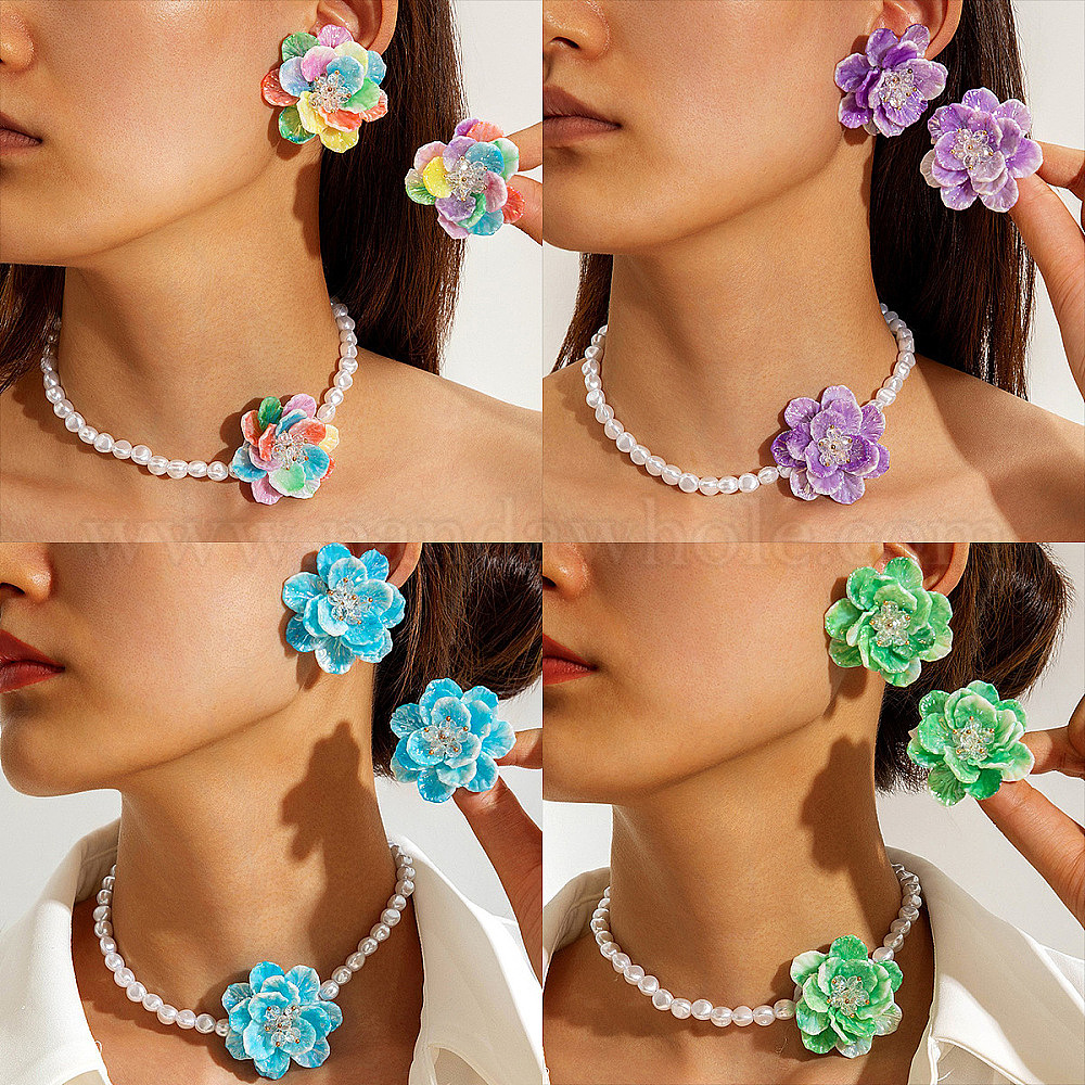 Подвески и серьги-гвоздики из пластиковых бусин-подвесок из смолы и стекла, цветок
