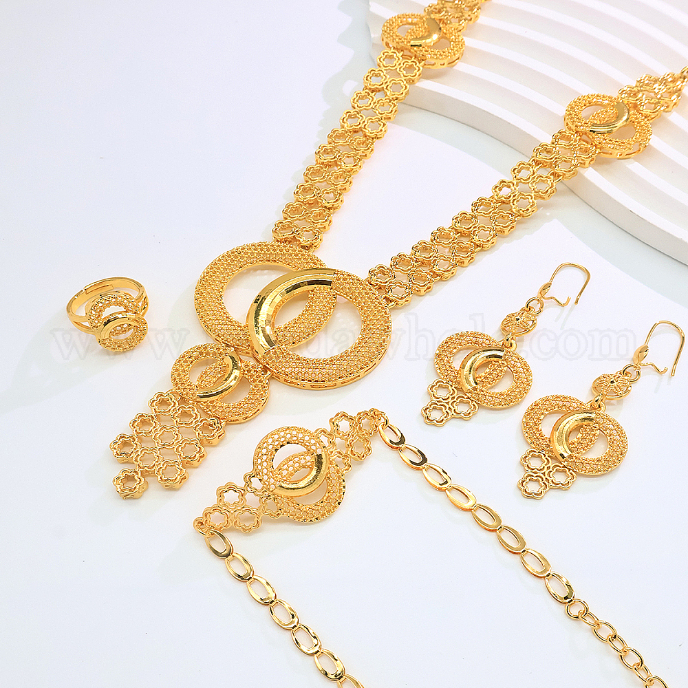 Элегантные браслеты, серьги, ожерелья и кольца из сплава с полыми круглыми элементами для женщин.