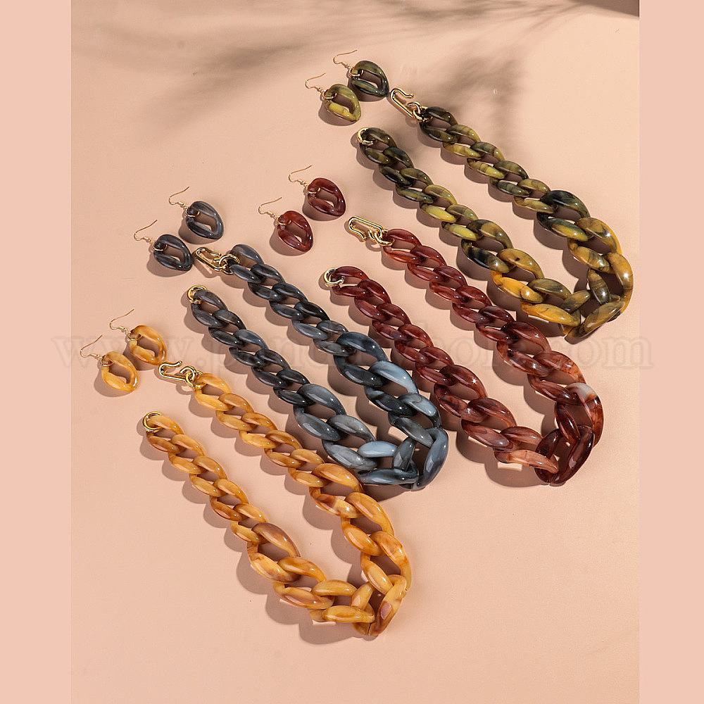 Комплекты акриловых цепочек-ожерельев и серег-подвесок, золотые