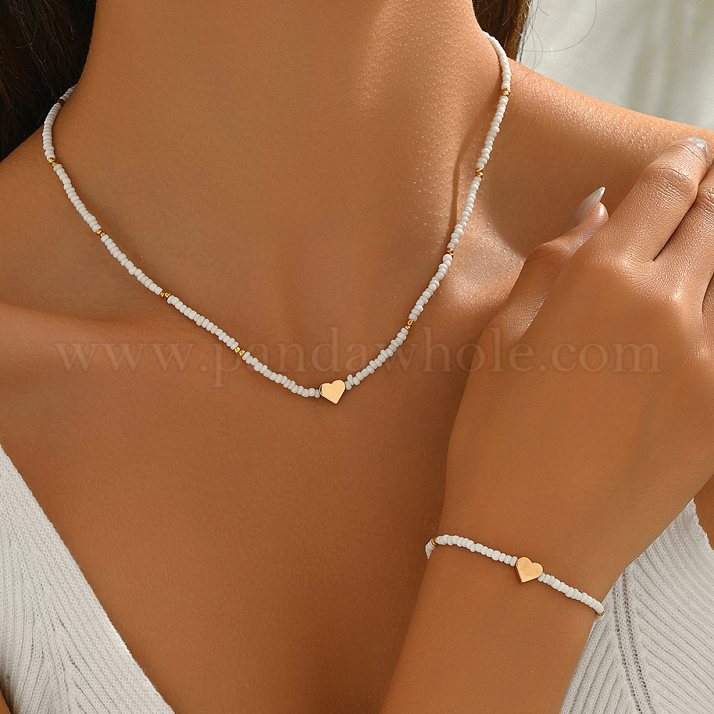 Наборы ожерелий и браслетов из стеклянных и пластиковых бусин., сердце