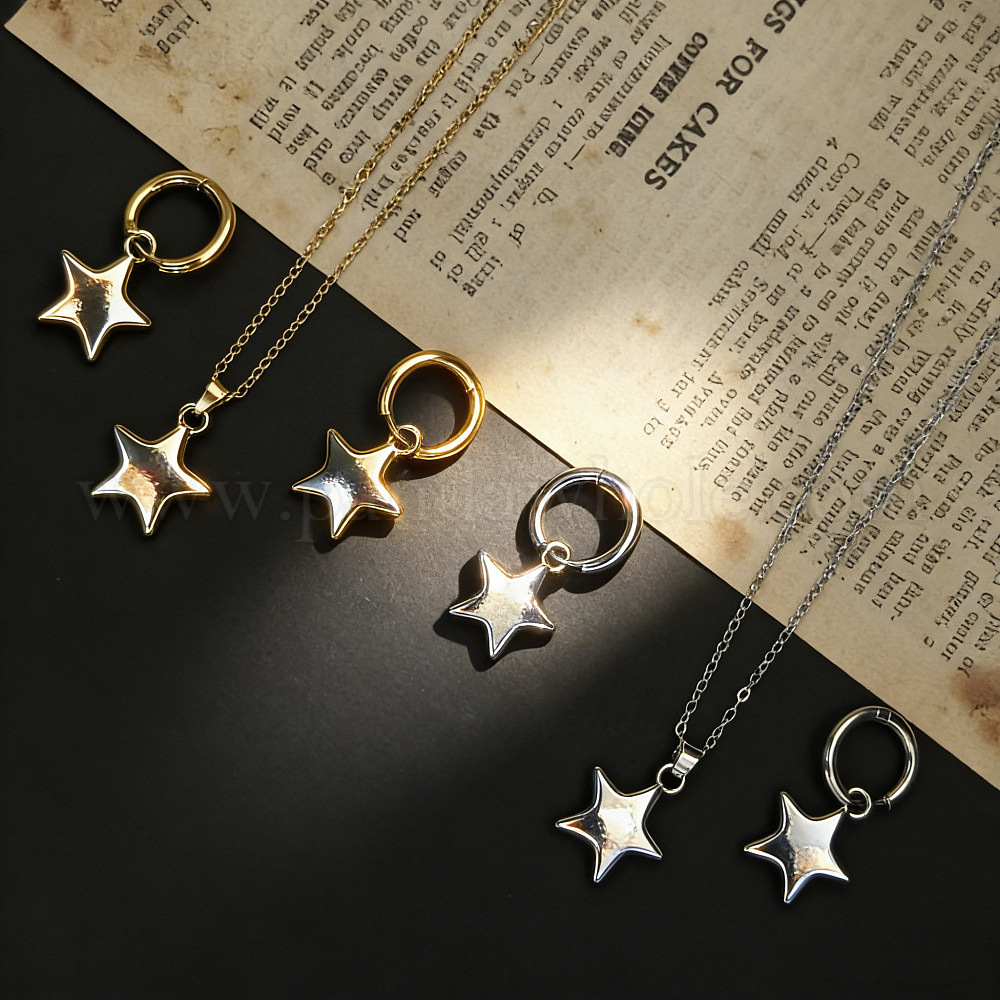 Наборы подвесок из сплава в форме звезды: колье и серьги-кольца