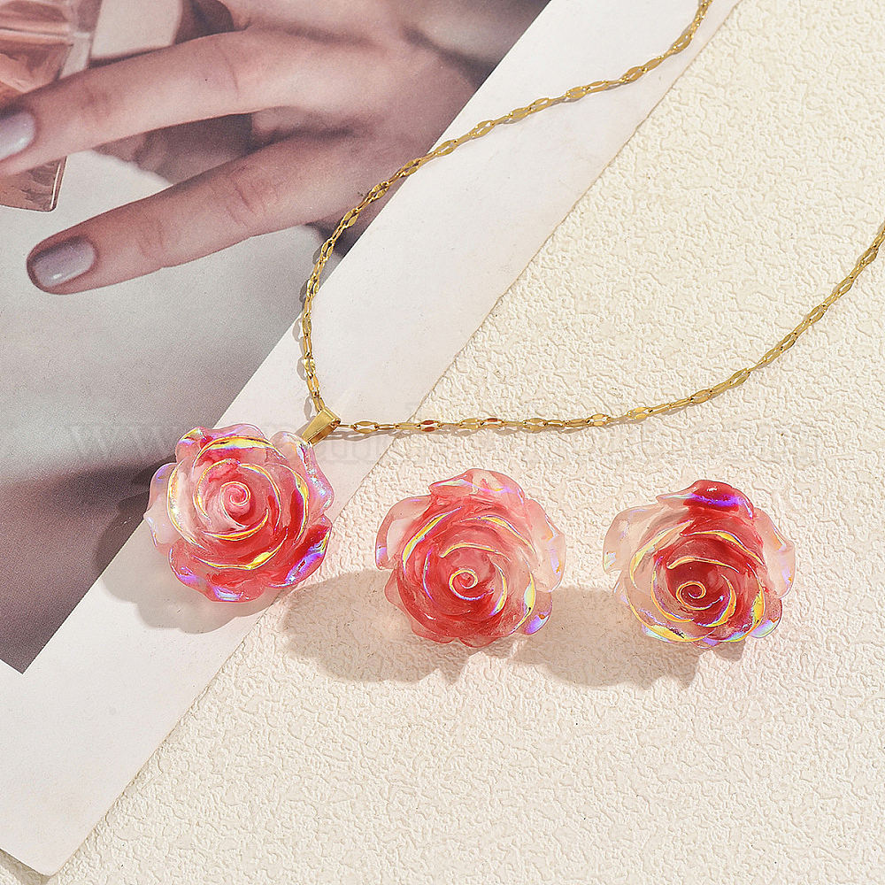 Комплект для женщин: подвеска в виде розы из переливающейся смолы и серьги-гвоздики., железный набор украшений