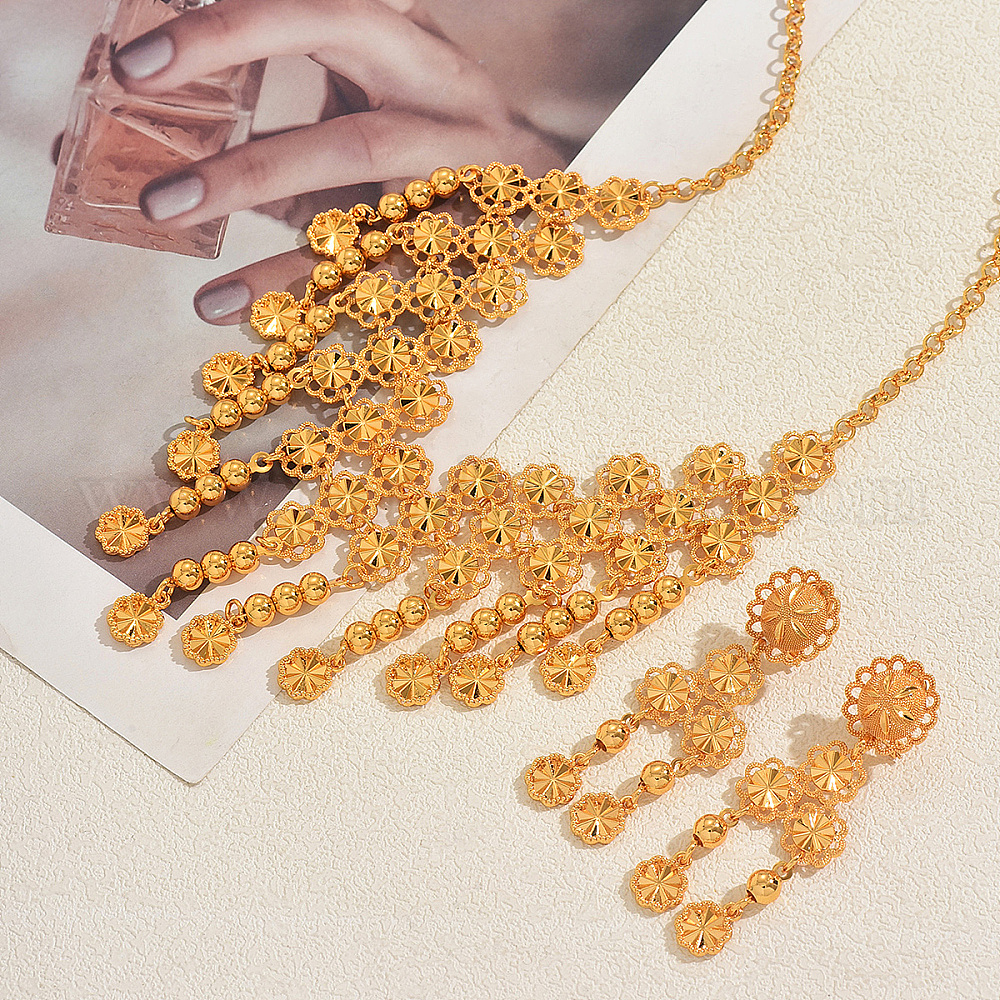 Наборы сережек-гвоздиков и колье из сплава с полыми цветочными кисточками для женщин