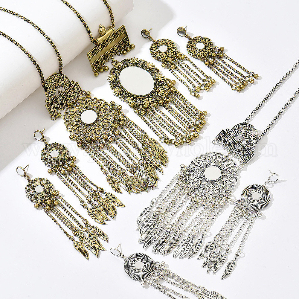 Винтажный ювелирный набор с подвеской в виде цветка и зеркала из сплава, Богемное колье и серьги с кисточками для женщин