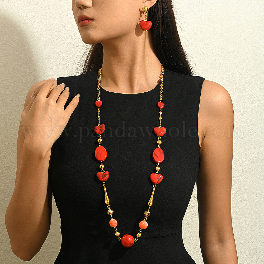 Модные серьги-гвоздики из сплава с бусинами в форме сердца, длинные цепочки и ожерелья для женщин в подарок.