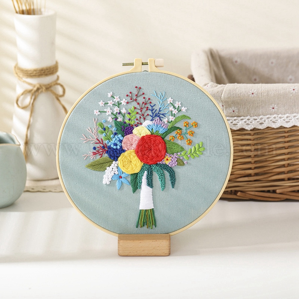 Набор для вышивки букета своими руками, включая имитацию бамбуковой рамы, железа контакты, ткань, красочные нити