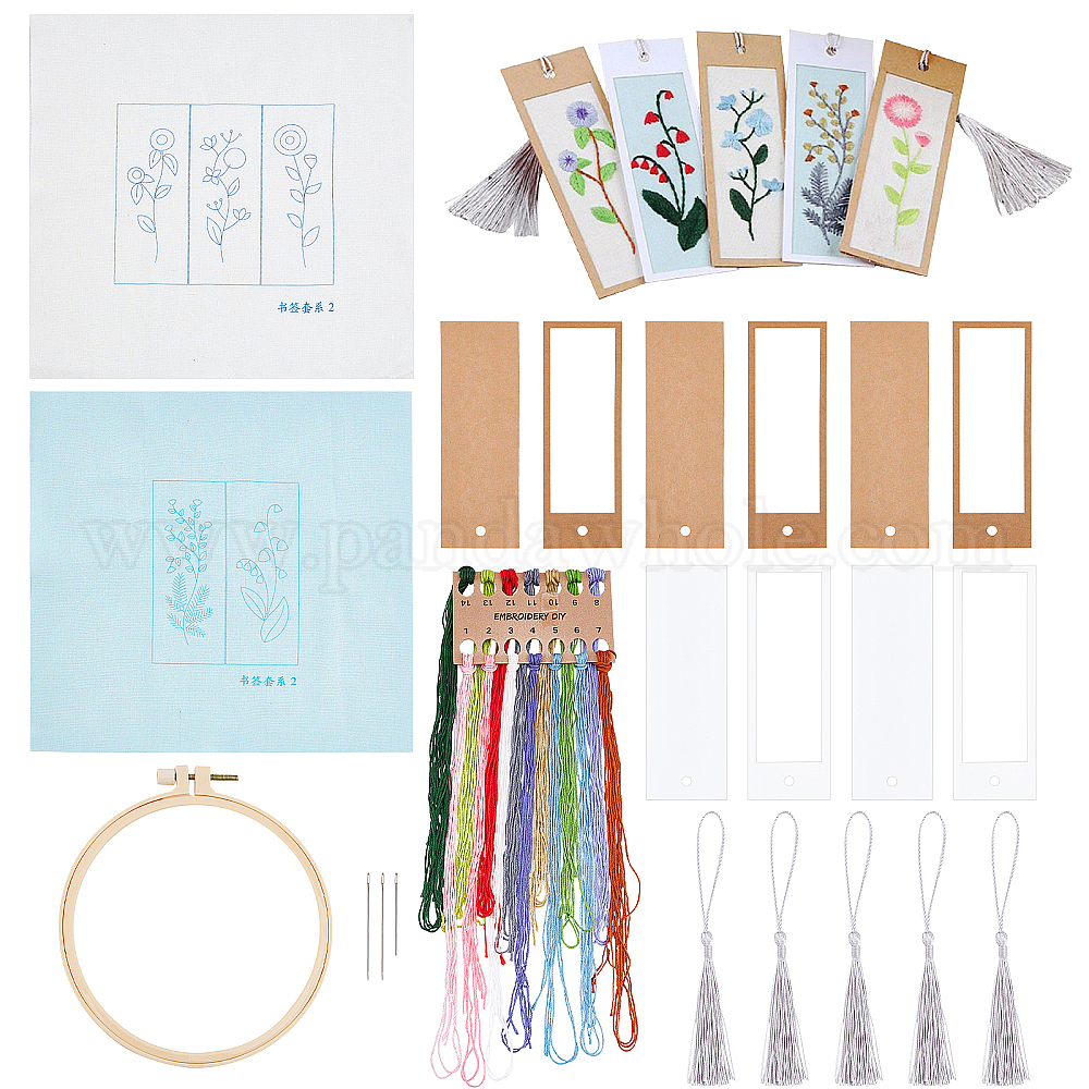 Наборы для вышивания закладок из бумаги с цветочным узором своими руками, включая ткань, хлопковые нитки, игла, открытки из бумаги, подвеска с кисточками и пяльцы для вышивания