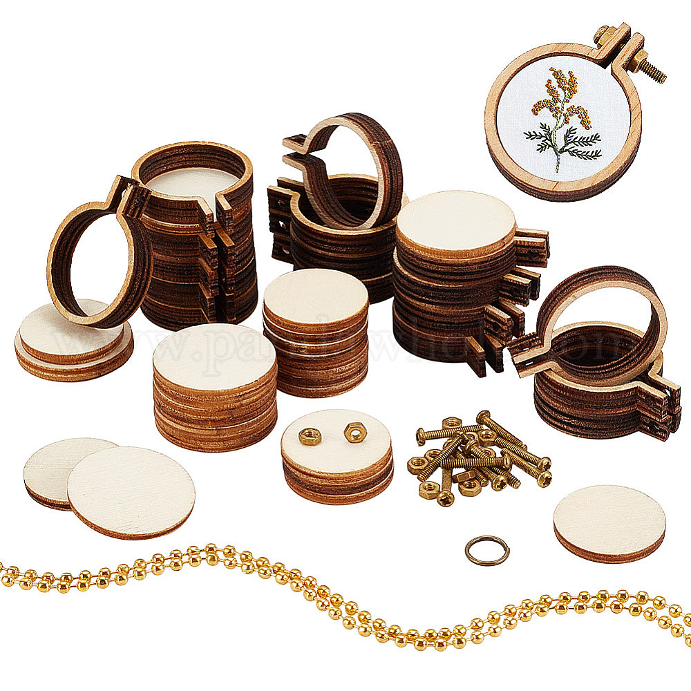 20 наборы мини-пяльцев из дерева, Рамка дисплея вышивки крестом, с винтами и гайками и 1 набором железных шариковых цепей, для рукоделия висячие украшения