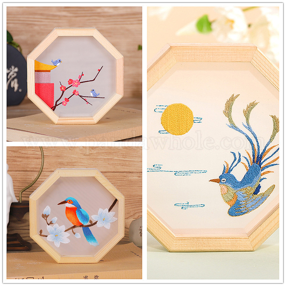 Наборы для вышивания птиц своими руками с цветочным/солнечным узором, включая набивную хлопчатобумажную ткань, нитки для вышивания, иглы и пяльцы, восьмиугольный деревянный каркас