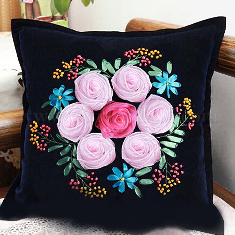 Наборы для вышивания подушек с цветочным узором своими руками, включая наволочку, нитки и игла для вышивания