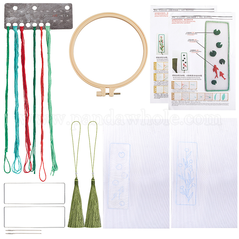 Наборы для вышивания закладок своими руками, включая ткань, нитки и иглы для вышивания, пластиковые пяльцы для вышивания (0318J1)