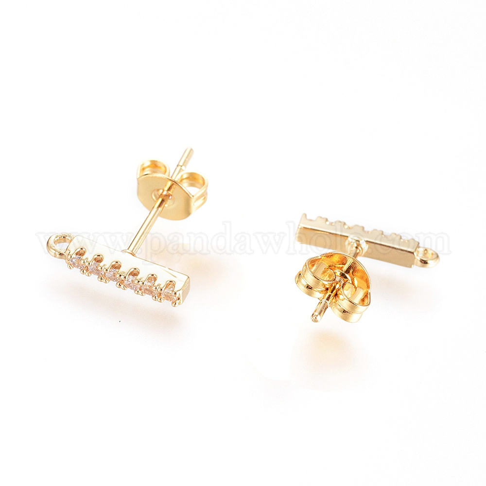 Серьги-гвоздики из латуни с прозрачным фианитом и прозрачным фианитом, долговечный, полоса, с петлей и ушными гайками