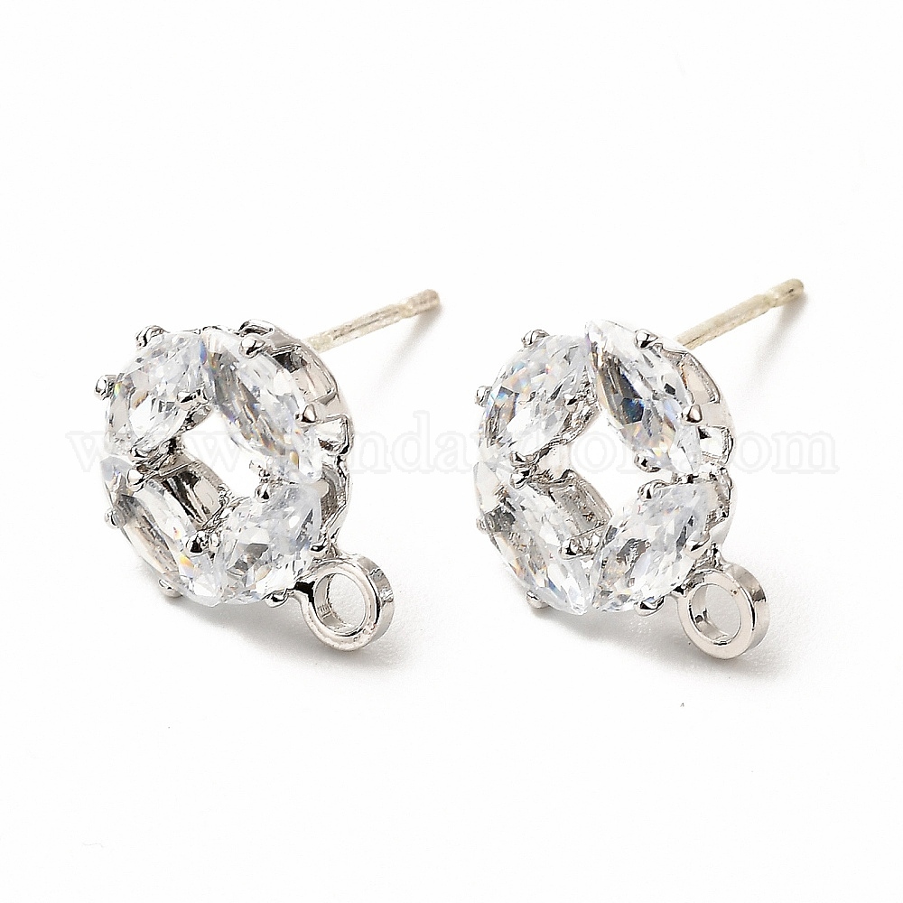 • Платина Латунные микро-паве прозрачные серьги-гвоздики из циркония, с петлей, плоско-круглые, платина, 11.5x9.5 мм, отверстие : 1.8 мм, штифты : 0.7 мм