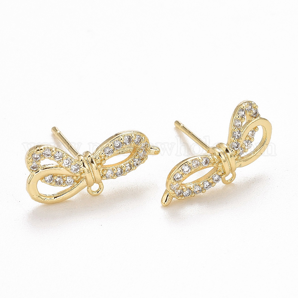 Фурнитура для серег из латуни с микропаве из кубического циркония, с петлей, без кадмия и без свинца, долговечный, бантом