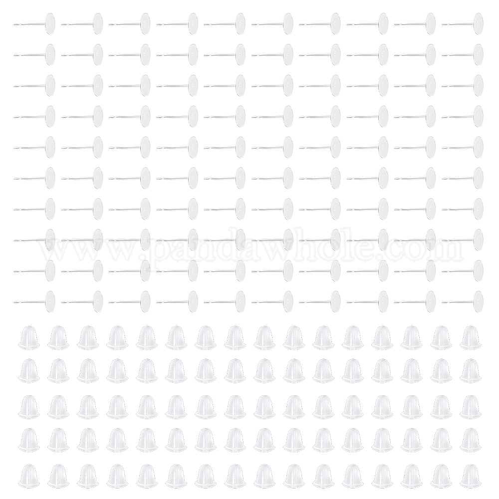 • Серебро 500 шт 304 детали серьги-гвоздики из нержавеющей стали, серьги с плоской подкладкой, с 500 пластиковыми ушными гайками, серебряные, 6x0.3 мм, штифты : 0.8 мм