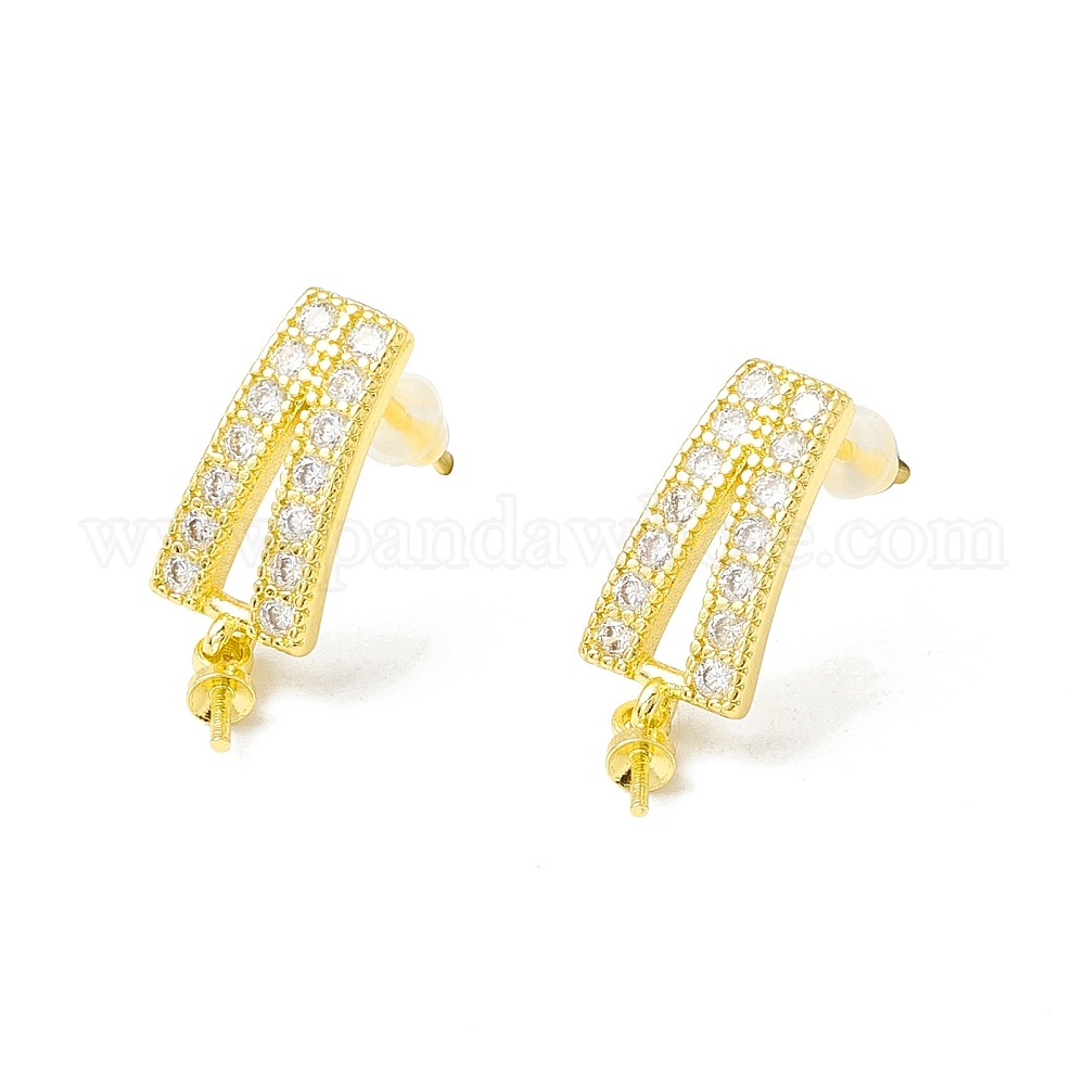 Латунные серьги, с кубического циркония, за половину пробурено бисера, без свинца и без кадмия, трапециевидные