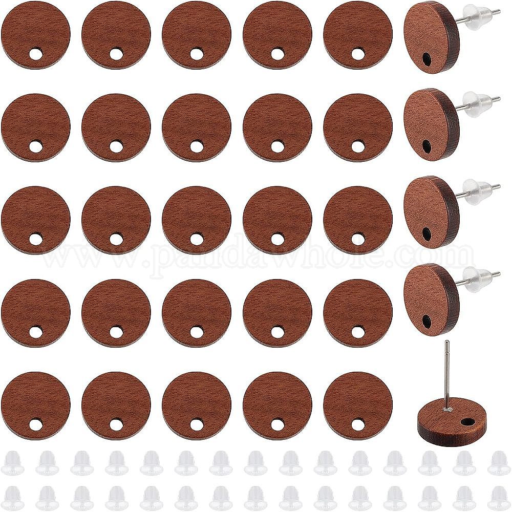 60шт. фурнитура для сережек-гвоздиков из орехового дерева, с 316 штифтом и отверстием из нержавеющей стали, плоско-круглые, с пластиковой ушной гайкой 60шт.