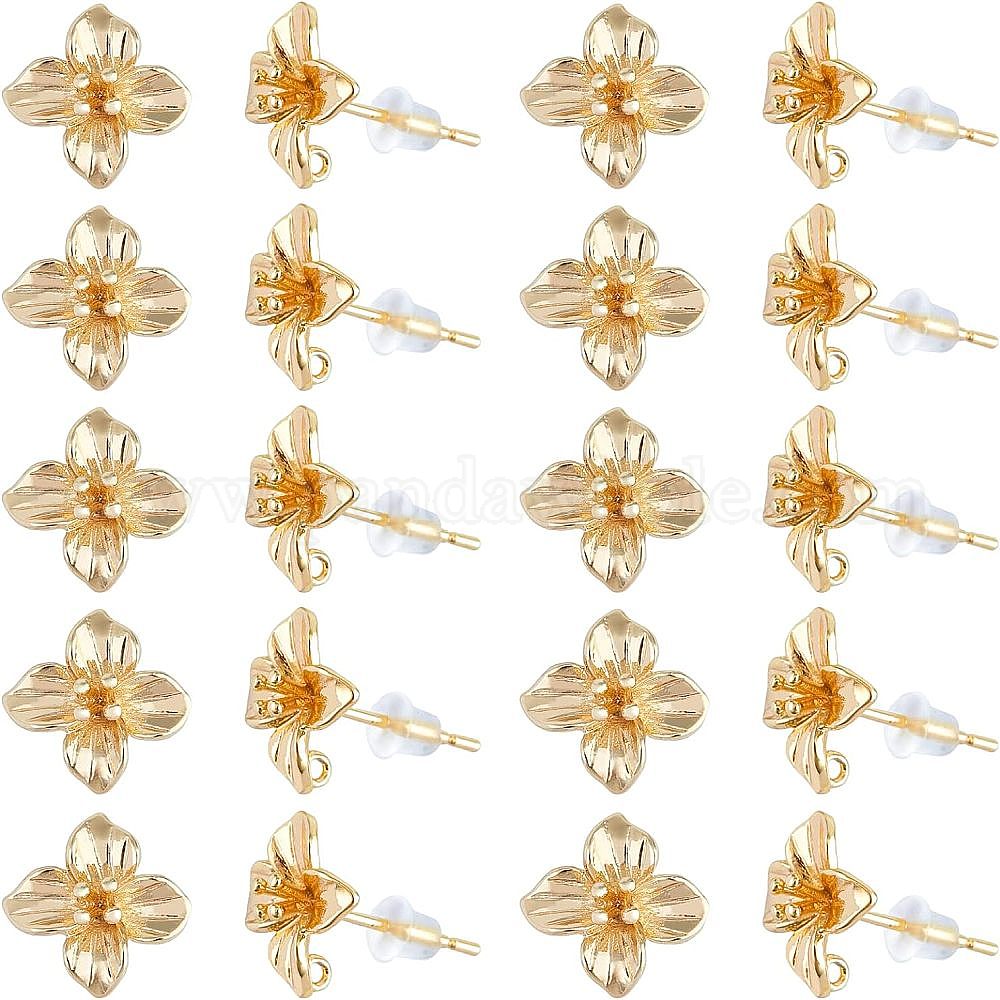 • Настоящее золото 18K 20 шт. латунные серьги-гвоздики, с 925 булавкой из стерлингового серебра и вертикальной петлей, без кадмия, без никеля и без свинца, цветок, с 20 пластиковыми ушными гайками, реальный 18 k позолоченный, 11x11 мм, отверстие : 0.9 мм, штифты : 0.8 мм