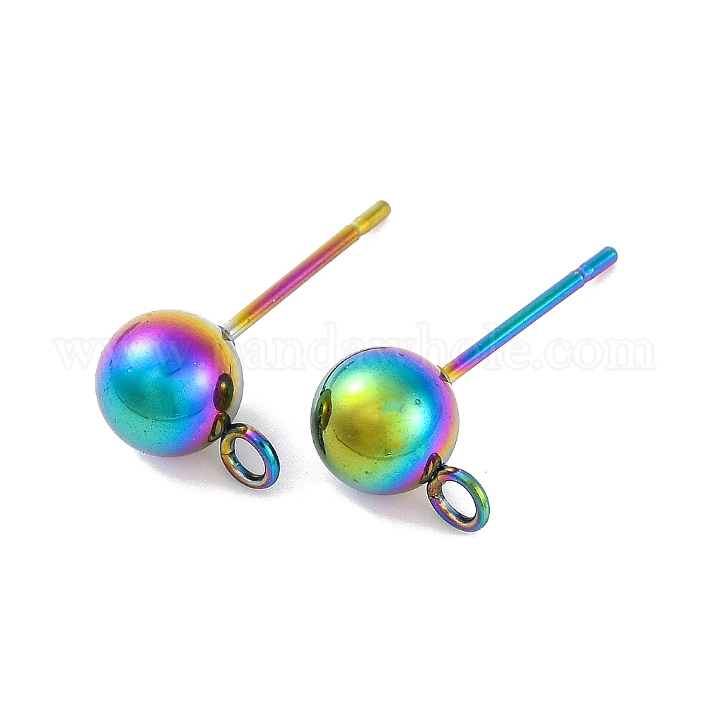 Цвет радуги 304 серьги-гвоздики из нержавеющей стали, выводы серьги, с горизонтальными петлями, ионное покрытие (ip)