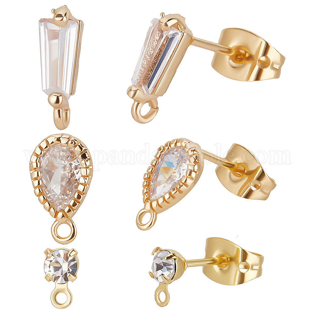• Настоящее золото 18K 30 шт. 3 фурнитура для сережек-гвоздиков из латуни с микропаве из прозрачного кубического циркония, с петлями и 30шт ушными гайками, каплевидная и плоская круглая и трапециевидная, реальный 18 k позолоченный, 6.5~10x3~5.5 мм, отверстие : 1 мм, штифты : 0.7~0.8 мм, 10 шт / стиль