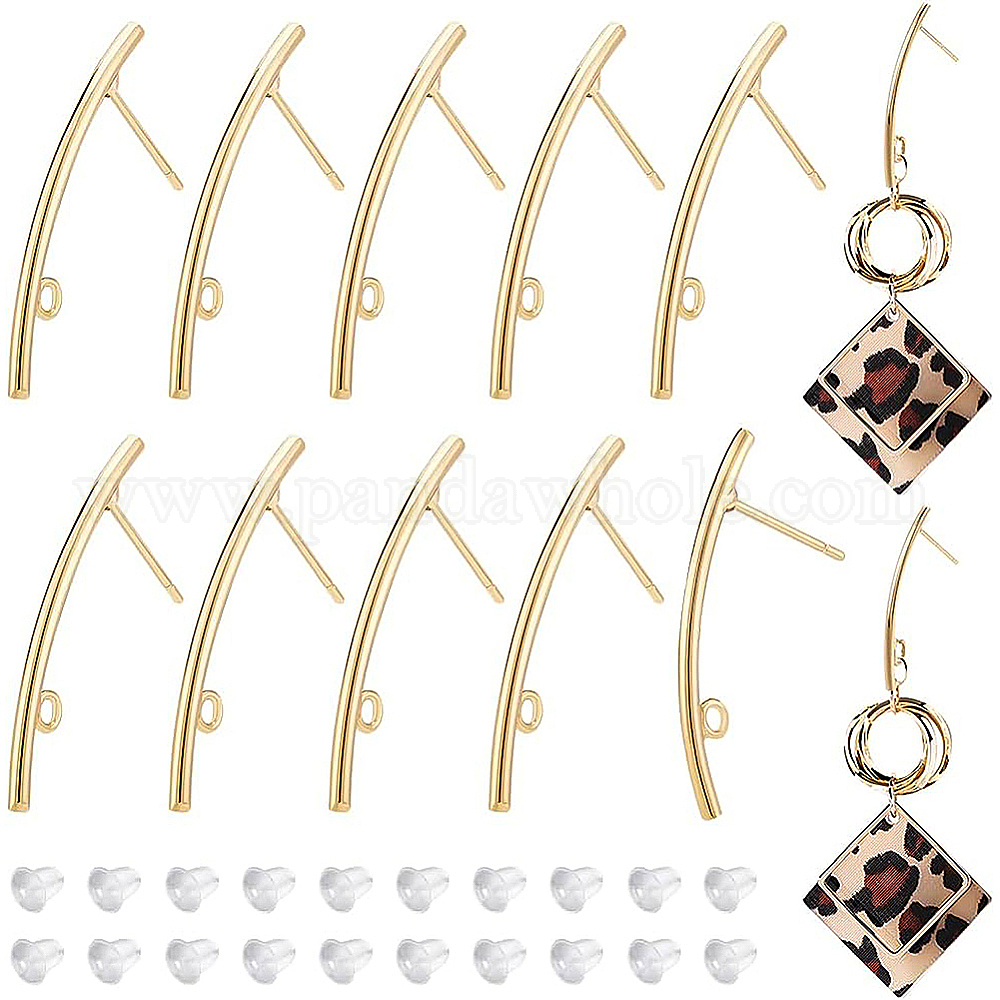 16 шт. латунные серьги-гвоздики, с вертикальными петлями, колонка, с 40 пластиковыми ушными гайками