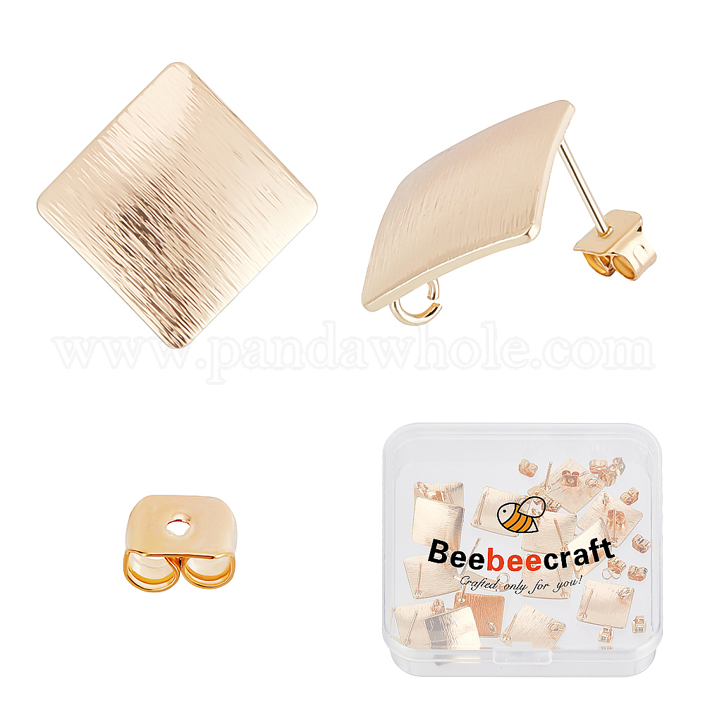 ромбовидные латунные шпильки для ушей: около 17.5x17.5мм, отверстие : 1.5 мм, штифты : 0.5 мм, 20 шт;