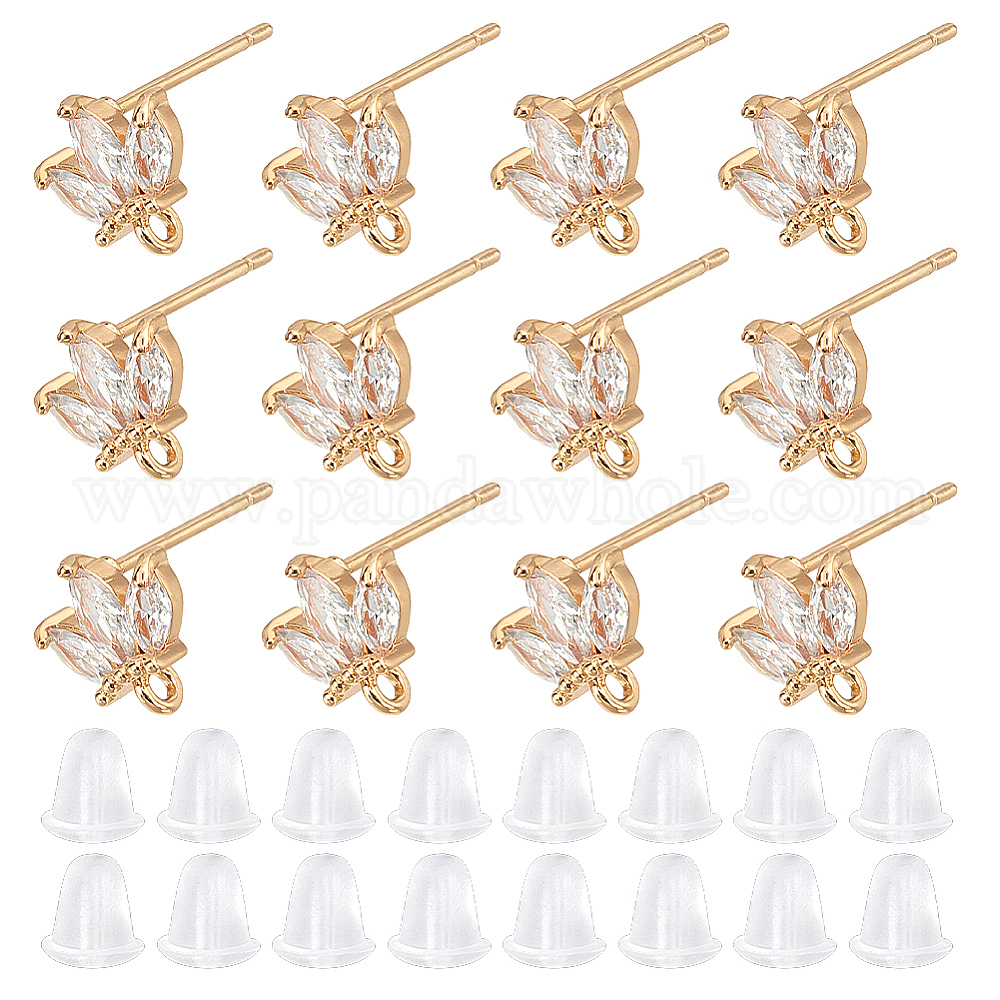 • Золотой 12Шт. латунная фурнитура для серег-гвоздиков из прозрачного кубического циркония с микропаве, с 925 булавками из стерлингового серебра и вертикальными петлями, без никеля , цветок, с 30 пластиковыми ушными гайками, золотые, 8x8 мм, отверстие : 1 мм, штифты : 0.8 мм