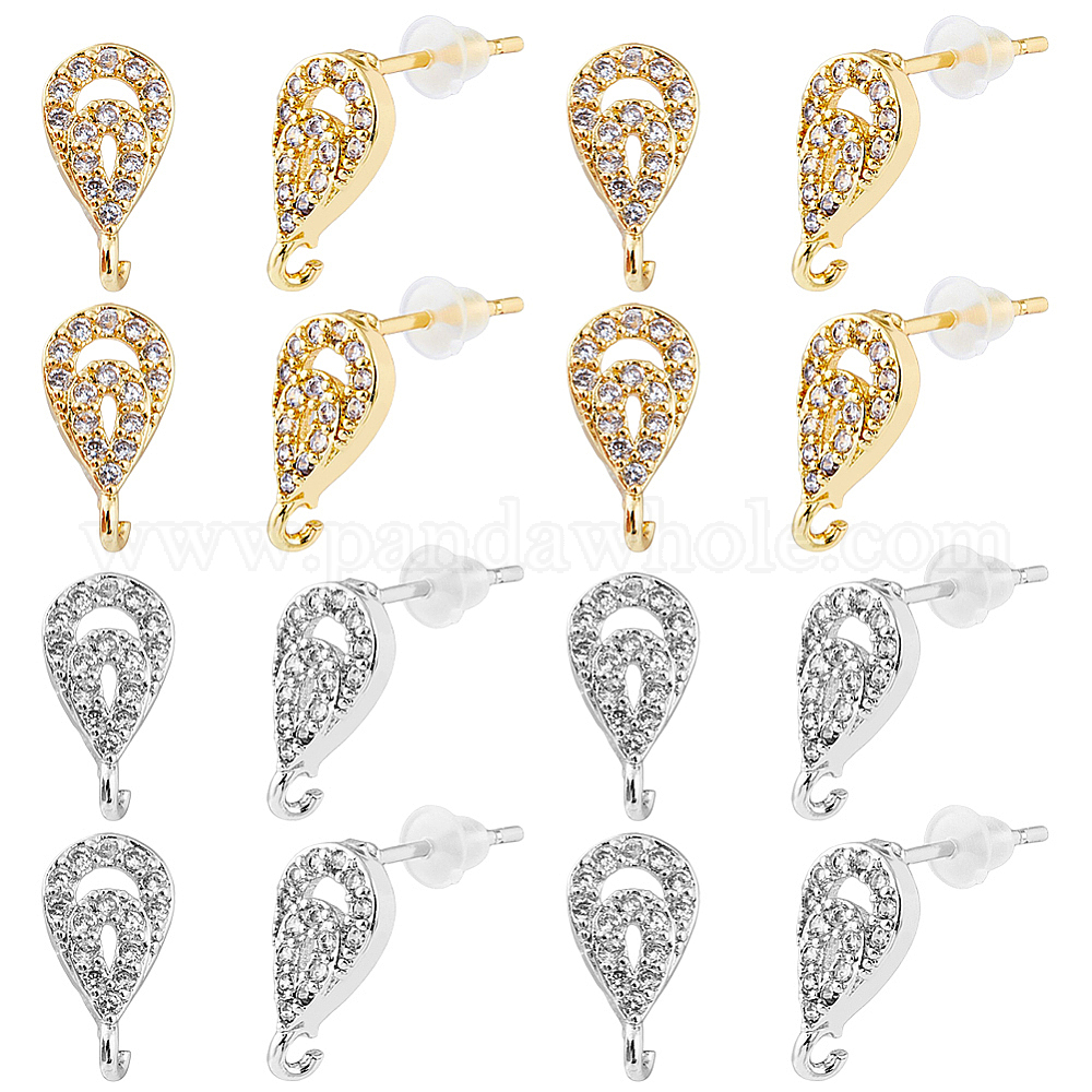 8 пары 2 цвета латунь микропаве прозрачный кубический цирконий серьги-гвоздики фурнитура, с вертикальными петлями, без свинца и без кадмия, слеза, с 30 пластиковыми ушными гайками