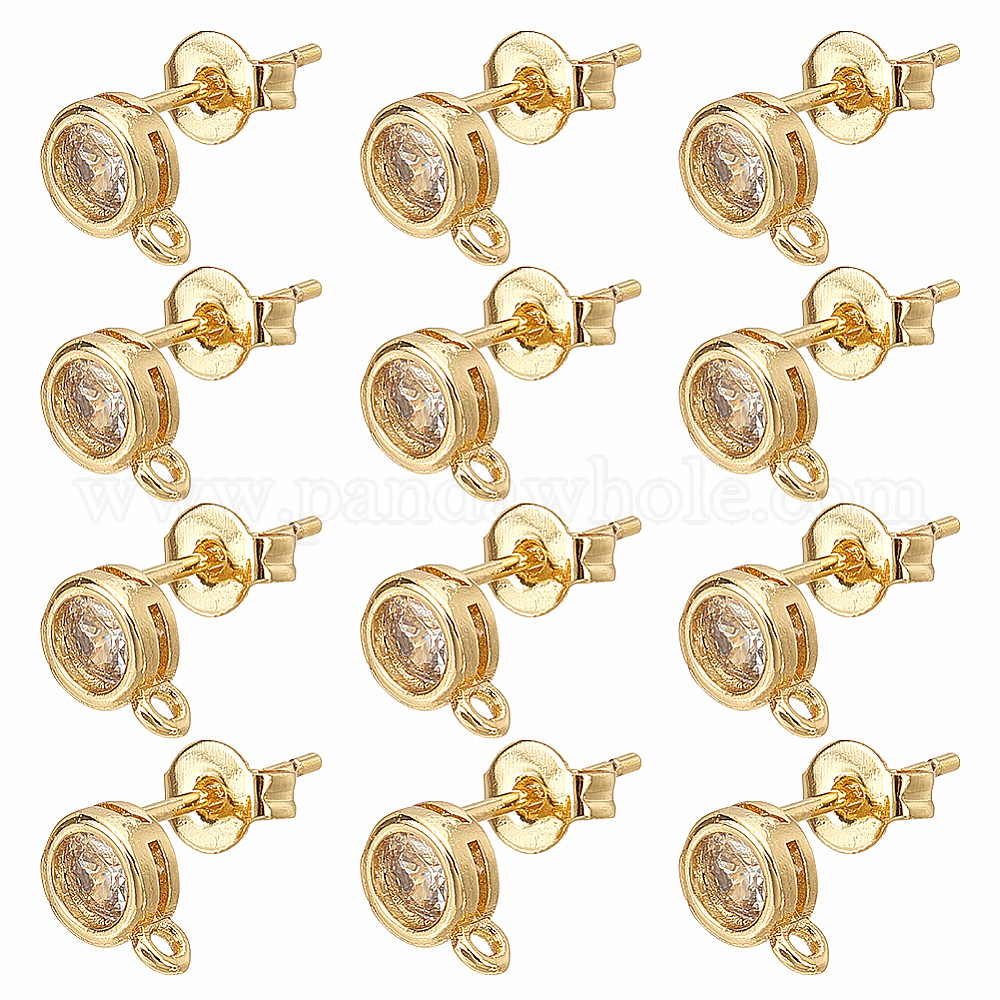 6 фурнитура для сережек из латуни с микропаве из кубического циркония, с вертикальными петлями, плоско-круглые, без кадмия, без никеля и без свинца (02E8SJ)