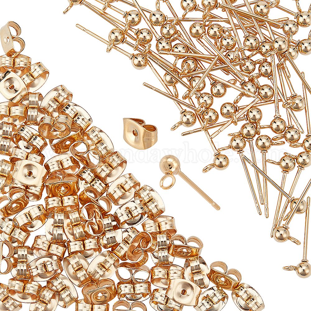 100шт 304 шарообразный штифт из нержавеющей стали для серьги, с горизонтальными петлями и 316 штифтом из хирургической нержавеющей стали, с ушными гайками 100 шт.