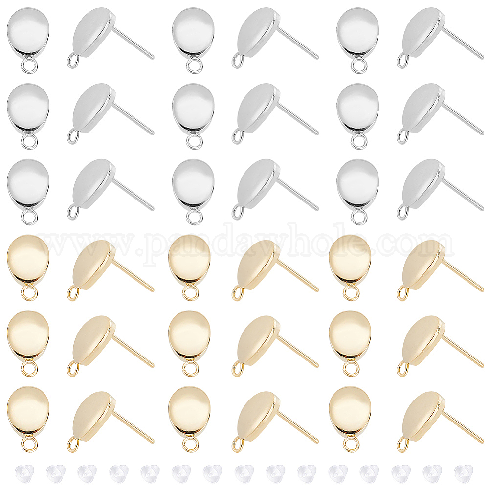 40 шт. 2 цвета 201 детали серьги-гвоздики из нержавеющей стали, с 304 штифтами из нержавеющей стали и горизонтальными петлями, овальные, с 80 пластиковыми ушными гайками