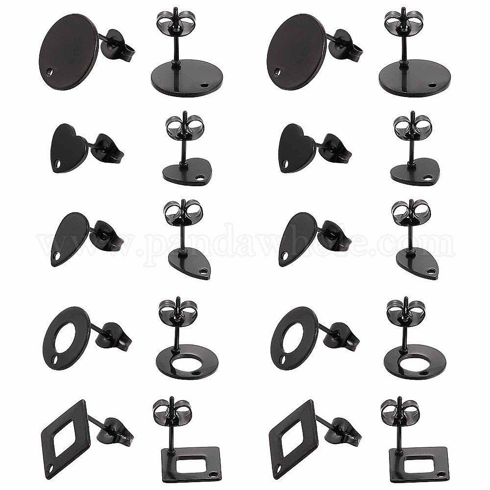 • Electrophoresis Black 30 шт 5 стиль 304 серьги-гвоздики из нержавеющей стали, с задницей и серьгой, пончик и плоский круглый и квадратный и каплевидный и сердце, электрофорез черный, 10~13.5x6~9x0.8~1 мм, отверстие : 1~1.6 мм, штифты : 0.7~0.8 мм, 6 шт / стиль