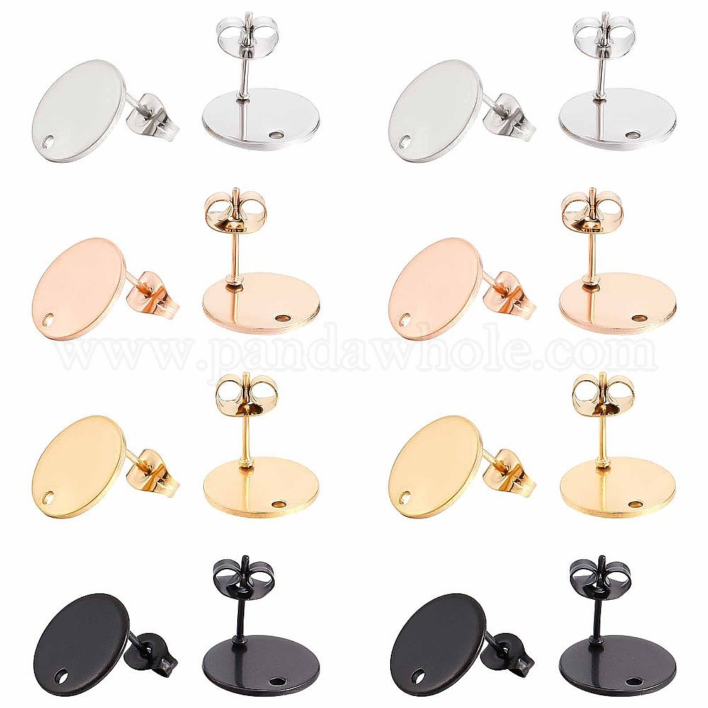 32 шт. 4 цвета 304 детали серьги-гвоздики из нержавеющей стали, с отверстием и ушными гайками / серьгами сзади, плоско-круглые