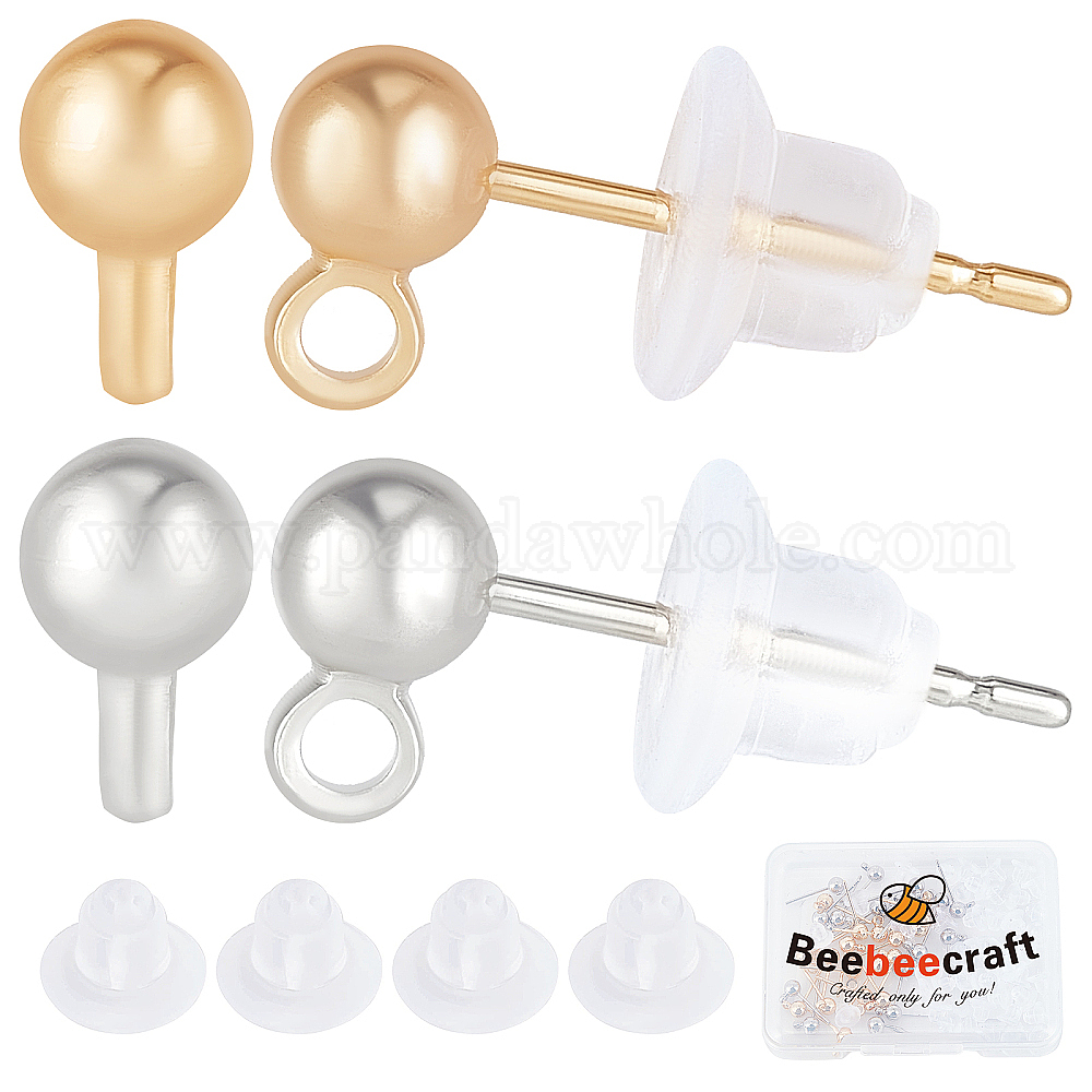 40шт 2 стиль латунный шариковый гвоздик серьги штифт, с петлями, без никеля , с 50экологичными пластиковыми ушными гайками