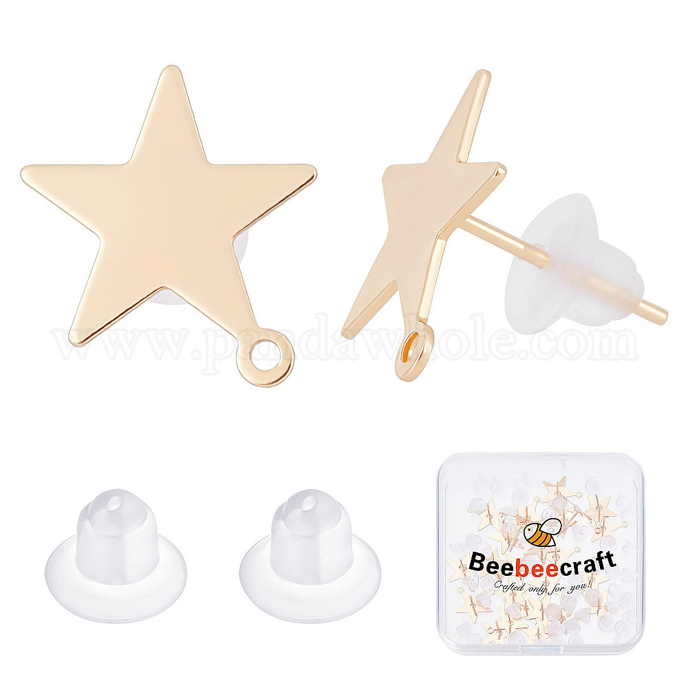• Настоящее золото 18K 30 шт. латунные серьги-гвоздики, с горизонтальными петлями, звезда, без никеля , с 50экологичными пластиковыми ушными гайками, реальный 18 k позолоченный, 14x13 мм, отверстие : 1 мм, штифты : 0.6 мм