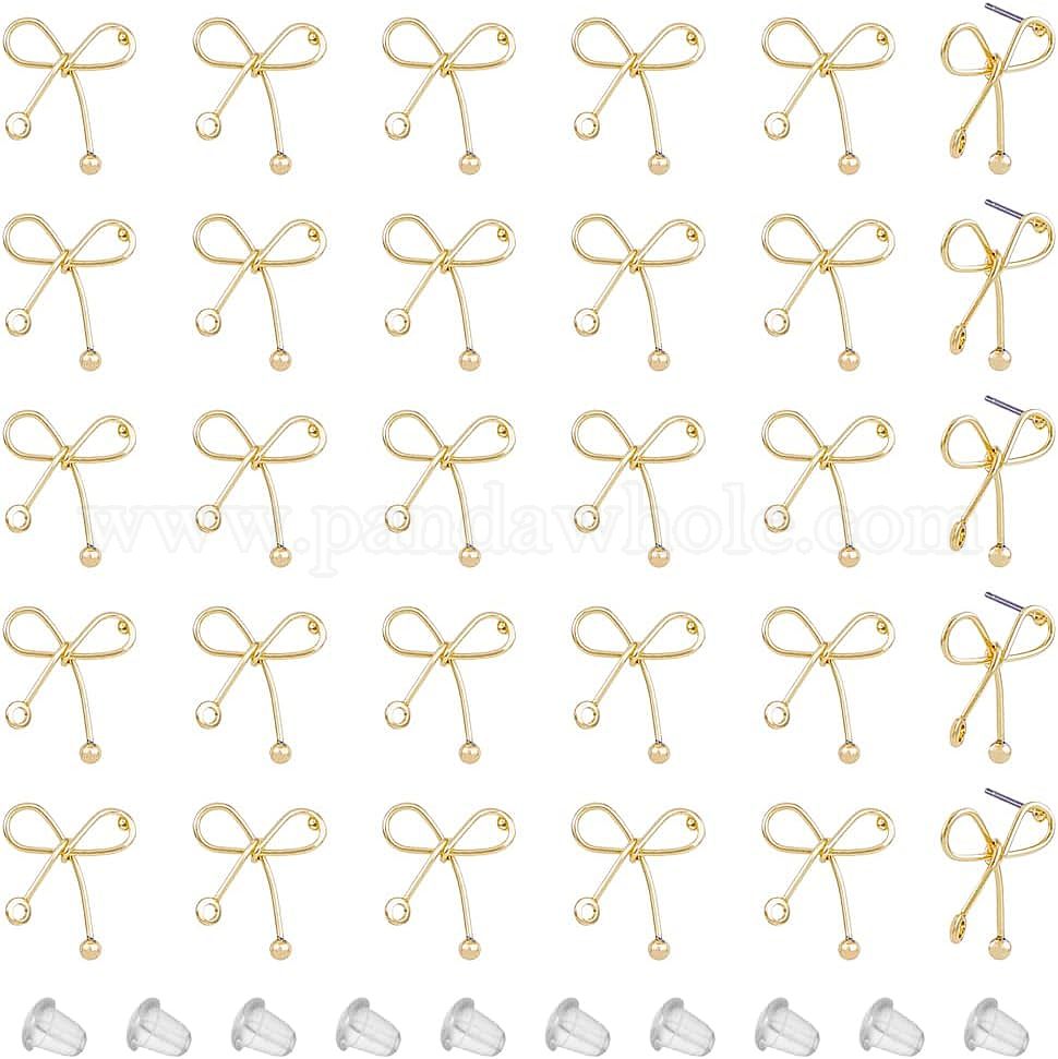 30 шт железные серьги-гвоздики, с горизонтальными петлями и стальным штифтом, бантом, с 50 пластиковыми ушными гайками