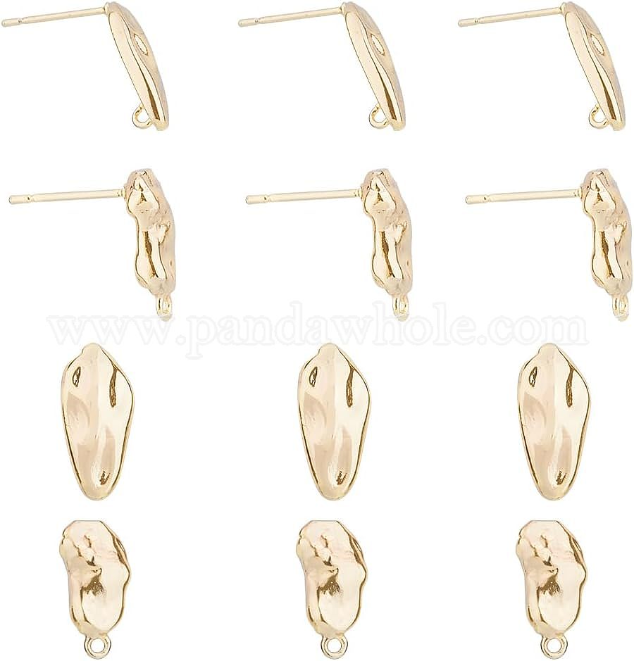 • Настоящее золото 18K 12шт 2 латунные серьги-гвоздики в стиле фурнитуры, с горизонтальными петлями и пластиковыми ушными гайками 30шт., реальный 18 k позолоченный, 13.5x6.5 мм, отверстие : 1.2 мм, 16.5x7.5 мм, отверстие : 1.4 мм, штифты : 0.7 мм, 6 шт / стиль