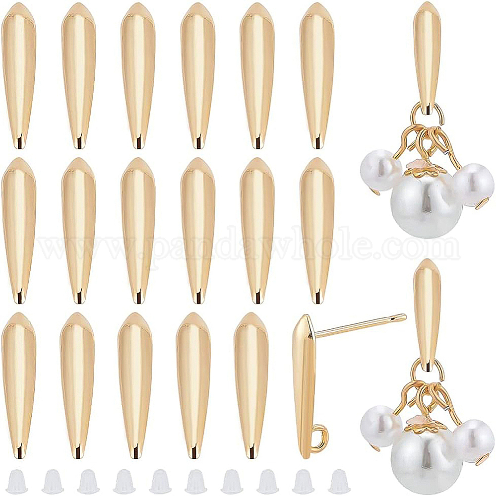 • Настоящее золото 18K 40 шт. латунные серьги-гвоздики, с вертикальными петлями и пластиковыми ушными гайками 40шт., слеза, реальный 18 k позолоченный, 15x3.5x3 мм, отверстие : 1.4 мм, штифты : 0.7 мм