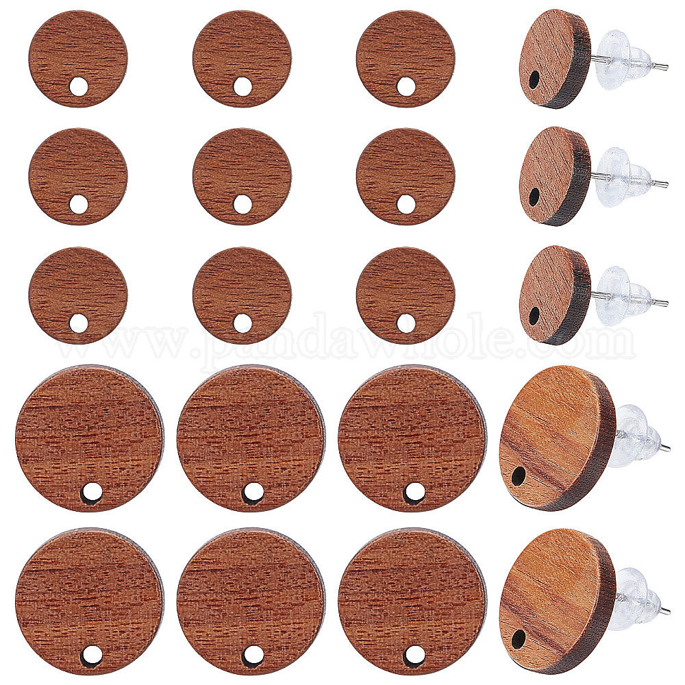 • Светло-коричневый 20 пары 2 размер плоские круглые серьги-гвоздики из орехового дерева, с 304 штифтами из нержавеющей стали и 50 пластиковыми ушными гайками, загар, 10~15 мм, отверстие : 1.6~1.8 мм, штифты : 0.7~0.8 мм, 10 пар/размер
