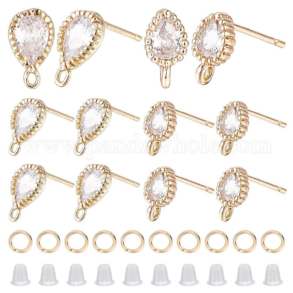 12шт 2 латунные серьги-гвоздики в стиле фурнитуры, с прозрачным фианитом и петлями, слеза, с соединительными кольцами 50шт. и пластиковыми ушными гайками 50шт.