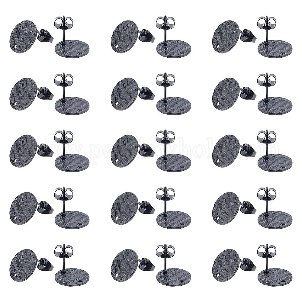 • Electrophoresis Black 40шт. ионное покрытие (IP) 304 фурнитура для сережек-гвоздиков из нержавеющей стали, с серьгами сзади и отверстием, , плоско-круглые, электрофорез черный, 12x1 мм, отверстие : 1.4 мм, штифты : 0.7 мм
